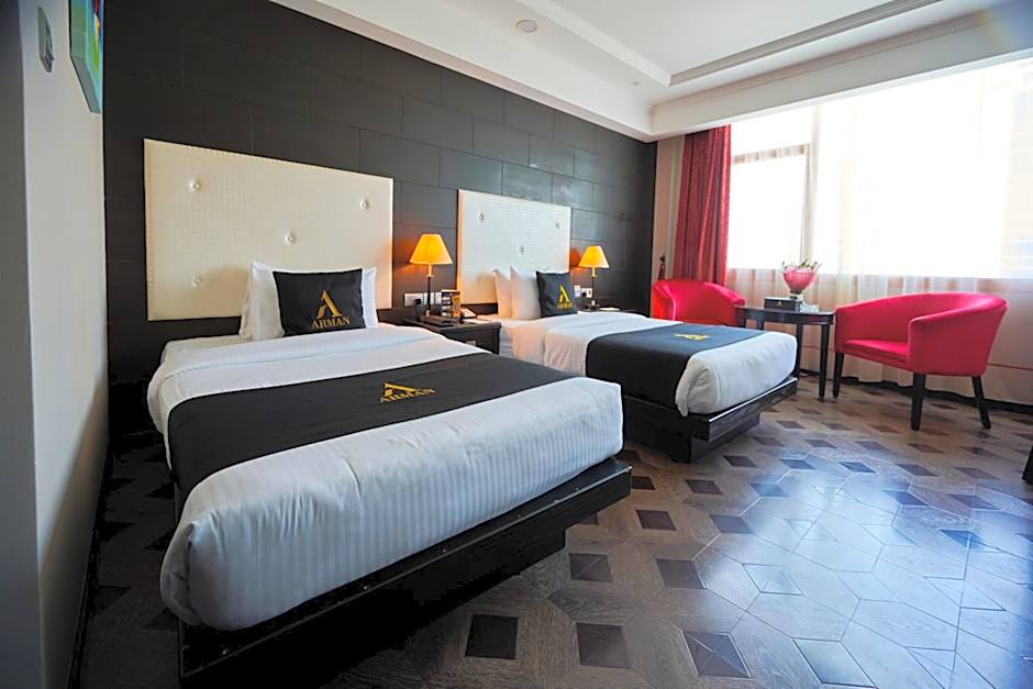 Guests will have a special experience as this family room provides a hot tub. Offering free toiletries and bathrobes, this family room includes a private bathroom with a bath, a shower and a bidet. The spacious air-conditioned family room offers a flat-screen TV with cable channels, soundproof walls, a mini-bar, a tea and coffee maker as well as city views. The unit offers 3 beds.